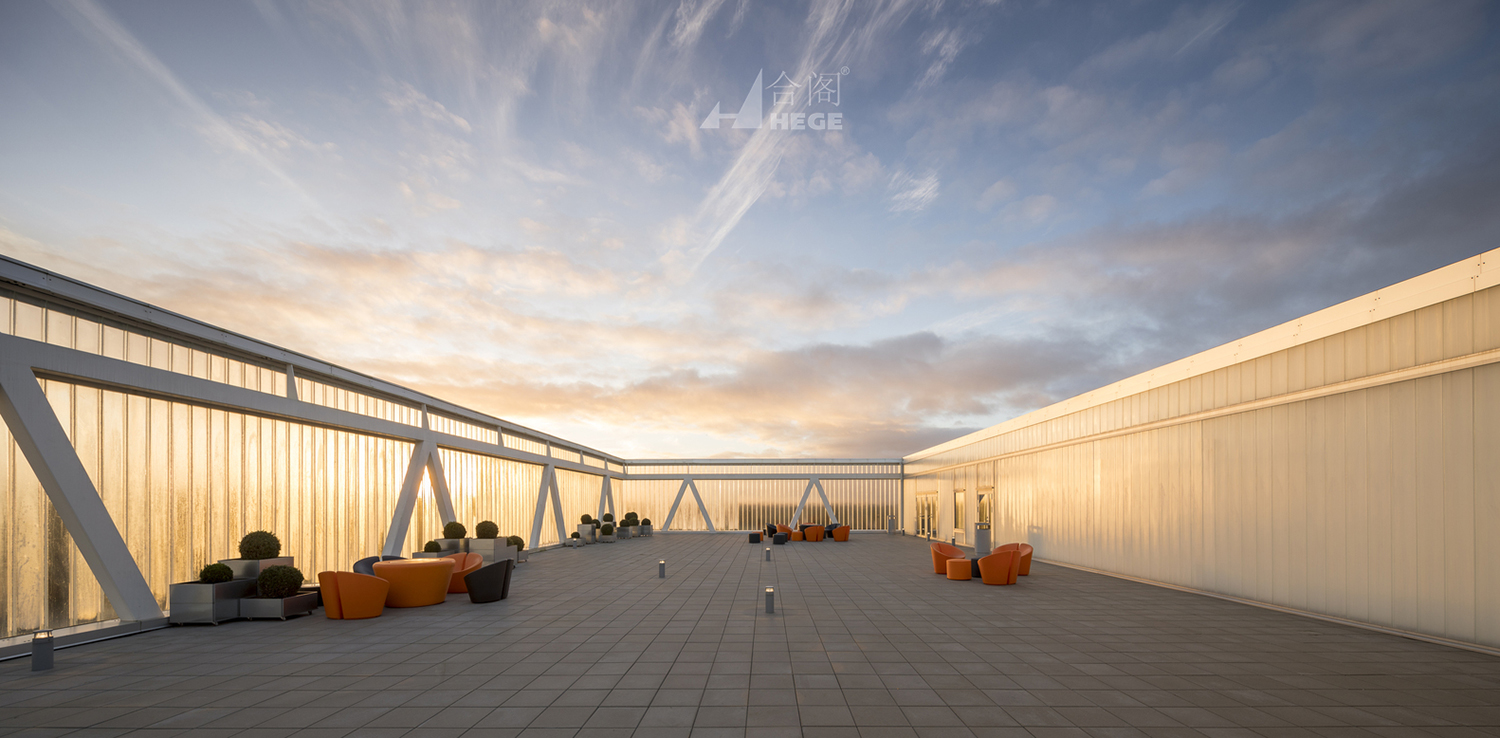 一个大天窗将日光照射在公共广场上,那里有一个集社会和行政功能的会议中心,在建筑的中心位置。站在广场上看,建筑中交叉的楼梯是一个额外的空间层。 这栋楼里的每栋房屋都有自己的正面形象。