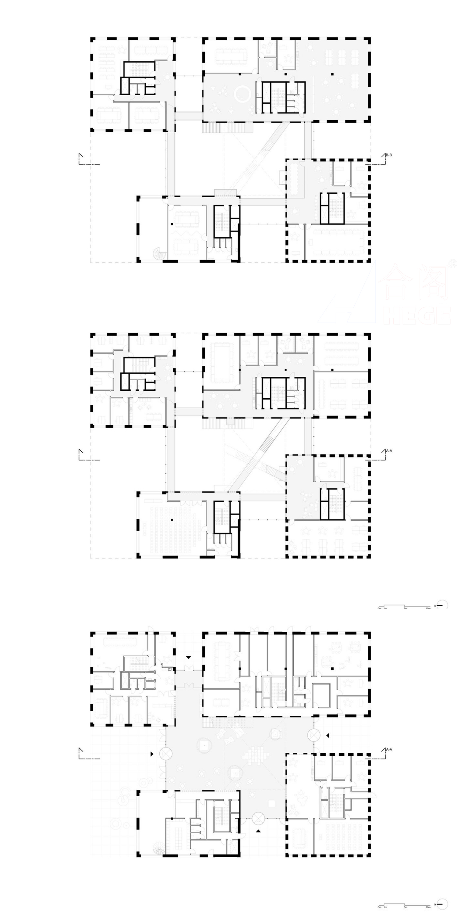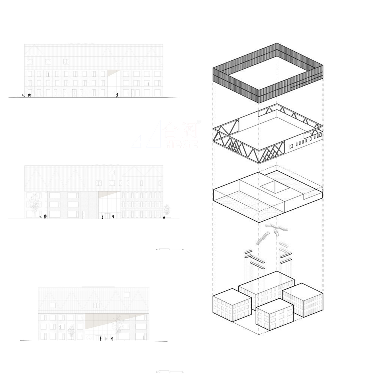 这是一个挑战心灵和身体的建筑,并在建筑与周围环境之间建立起紧密的联系。将体育设施作为“屋顶”,横跨四间房屋,我们创造了一种物质和精神上的分享体验,同时也创造了知识与运动之间的新混合体。