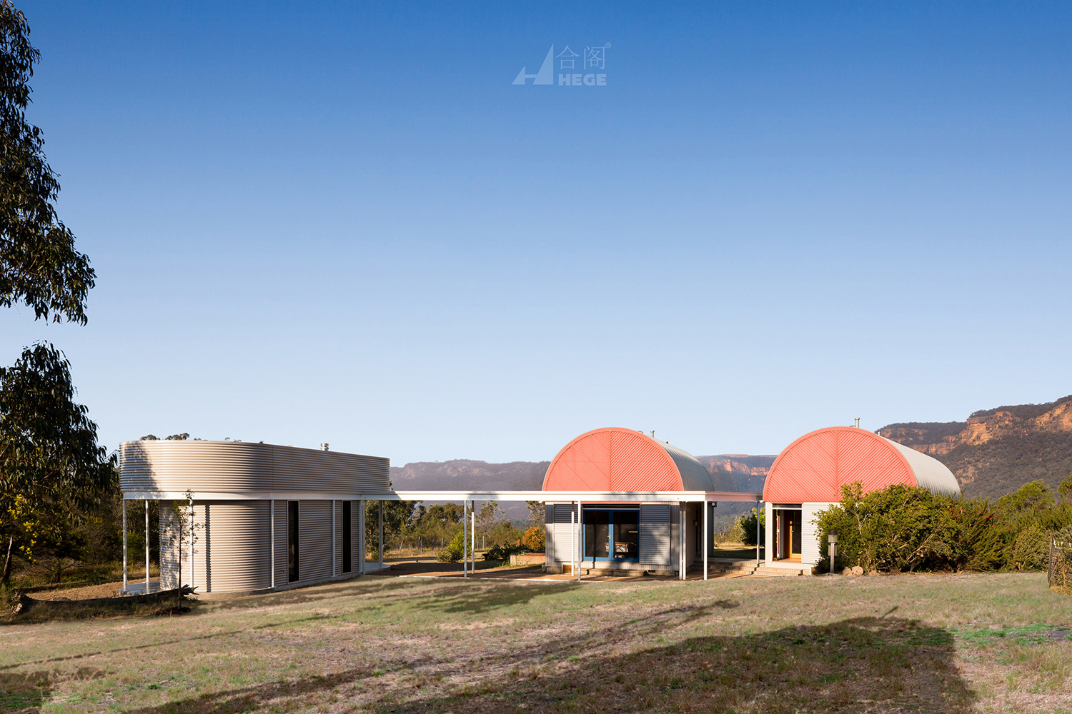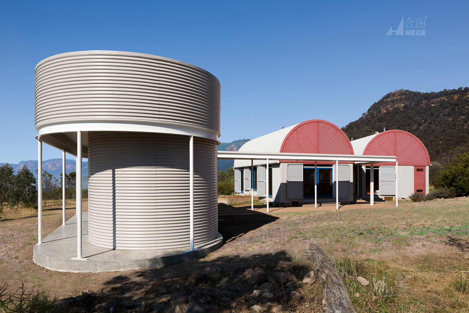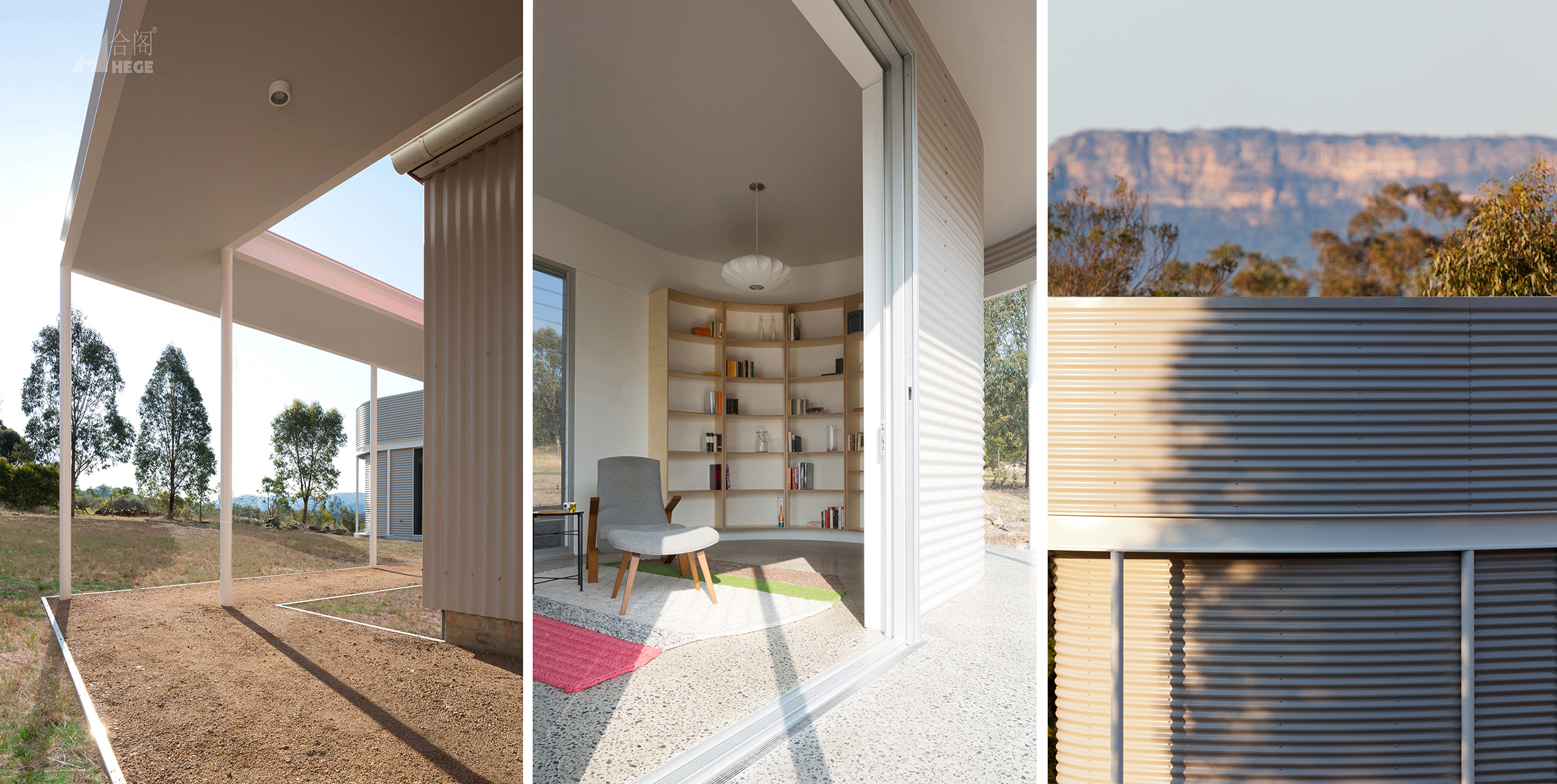 建筑是三个独立的亭子的一部分,每个亭子都包含睡眠、生活和工作的功能,反映了和谐的生命周期平衡,并与自然环境交织在一起。