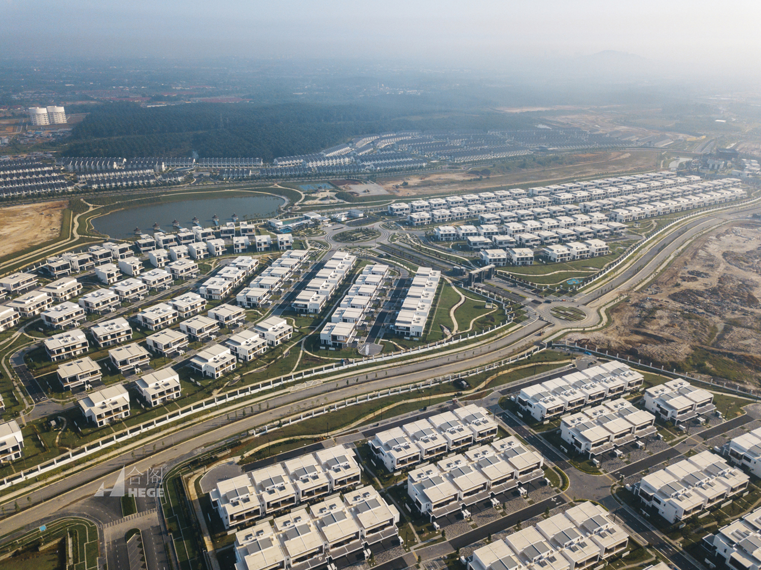 集群别墅规划区由精心设计的流程以及建筑师和开发商密切合作打造而成。在自然与建筑环境融为一体的前提下,开发形成绿肺的概念,将有超过35%的地块用于绿色景观和自然特征。别墅拥有田园般的绿色环境、丰富的水体,包括一个位于开发区附近的广阔湖泊在内,总面积约为10.19公顷。