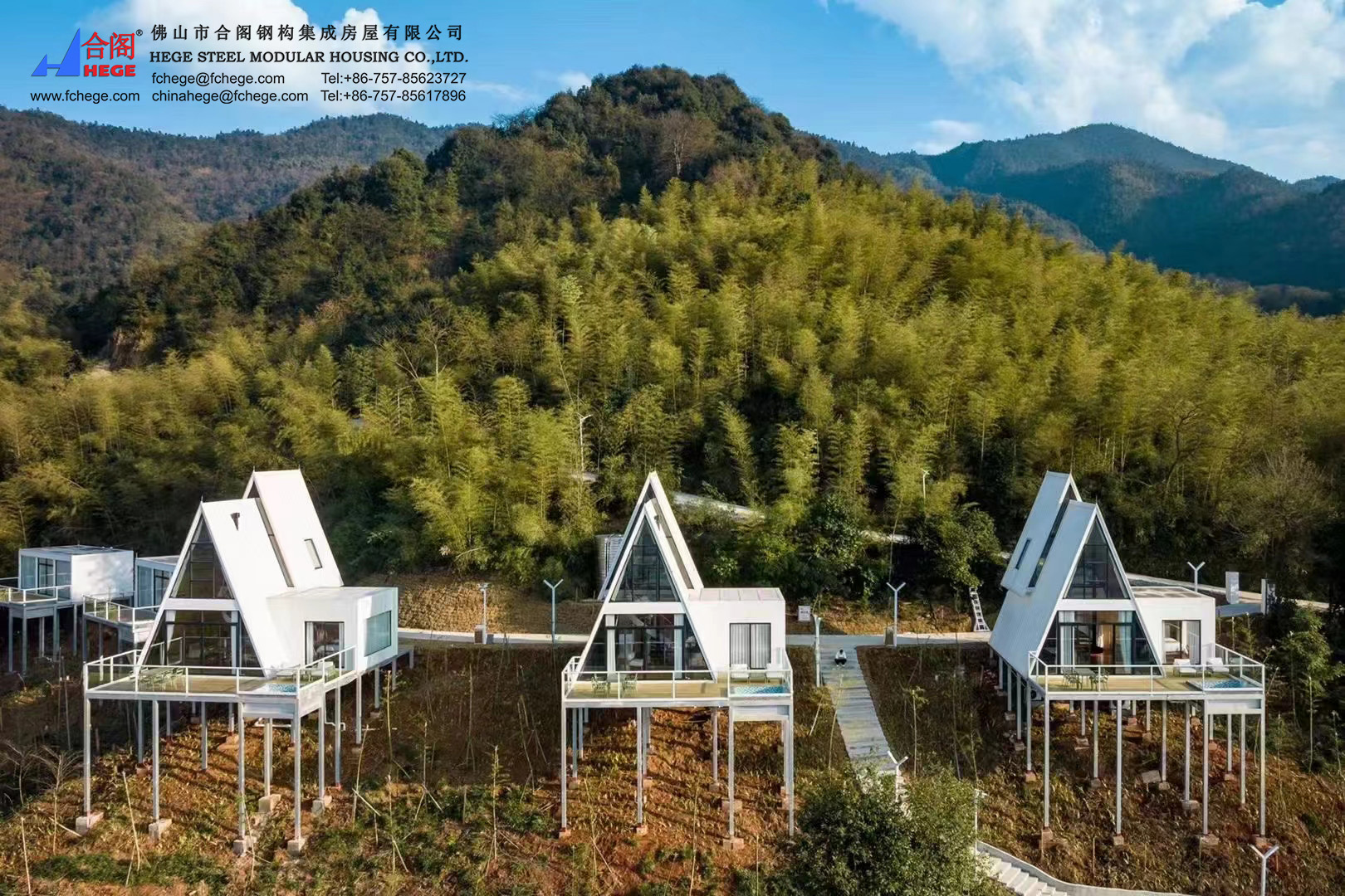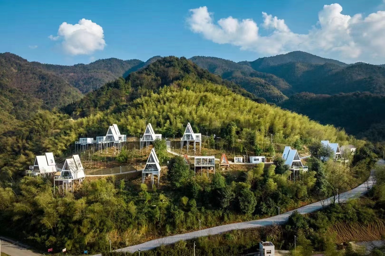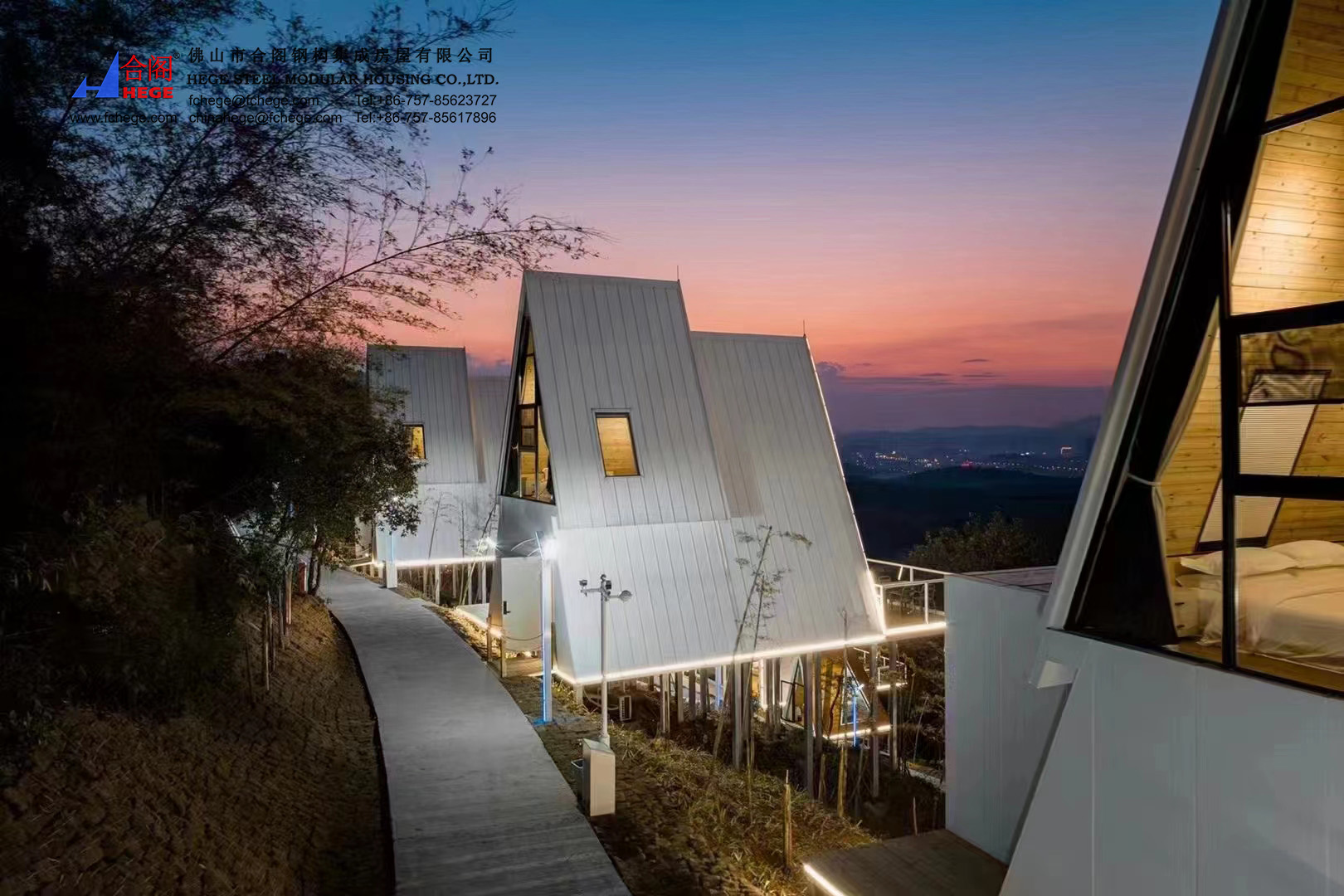 该项目以三角屋为主体建筑,打造的一个森林系旅游度假区项目,三角屋通过不同的层次,创造了丰富的空间视觉效果,既融为一体又相对独立,不同高度带来不同的森林景观体验。