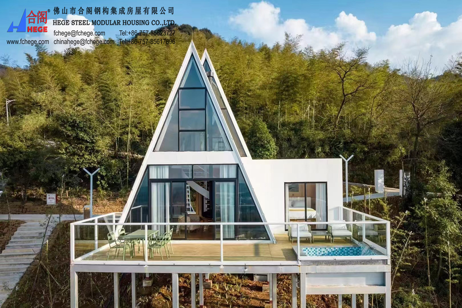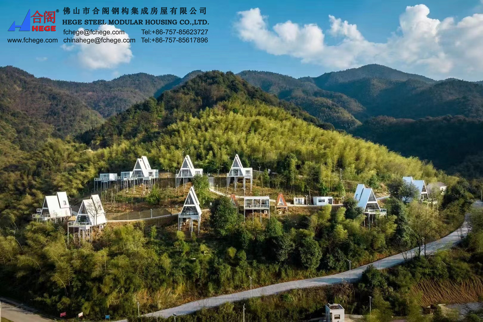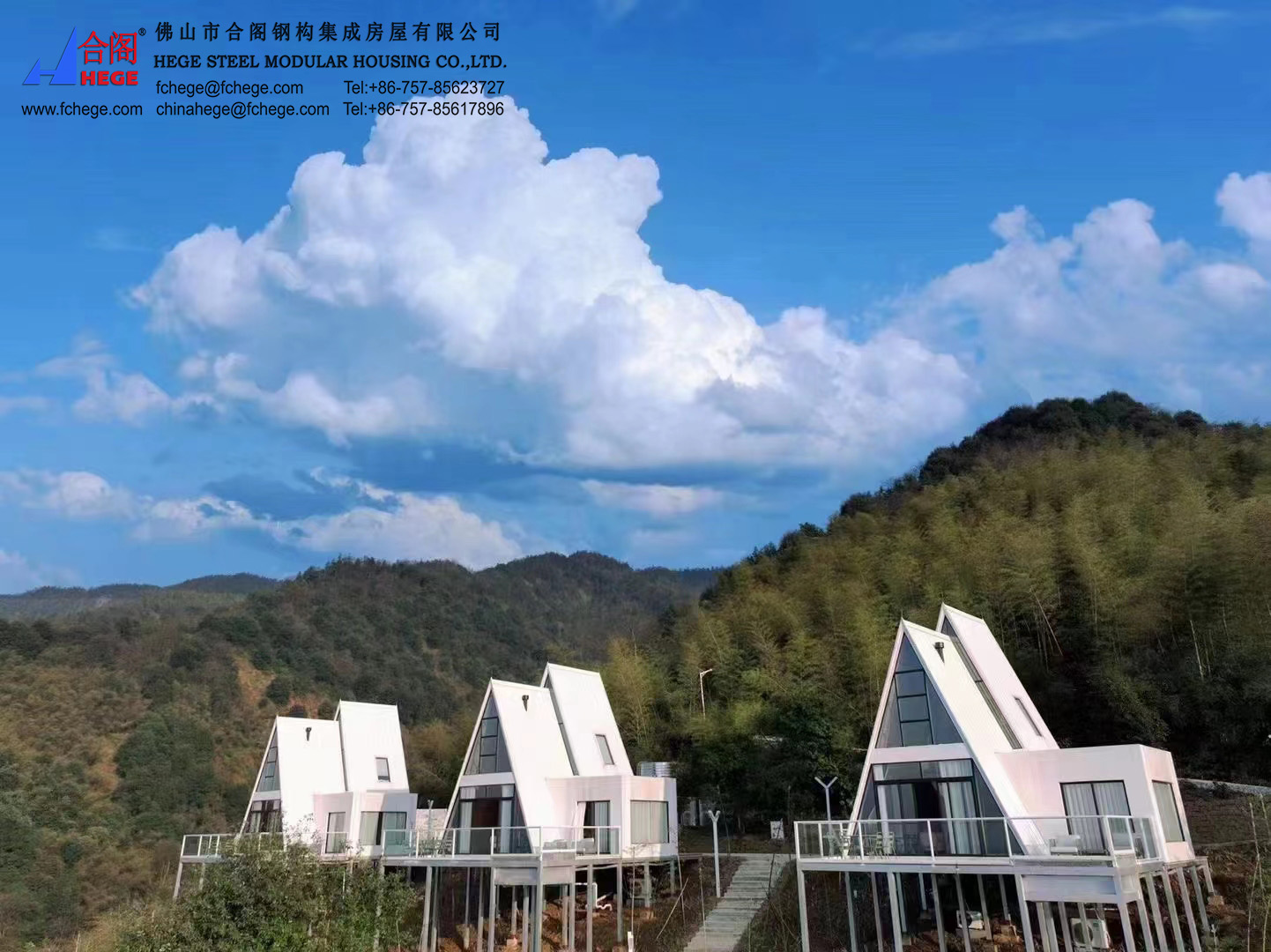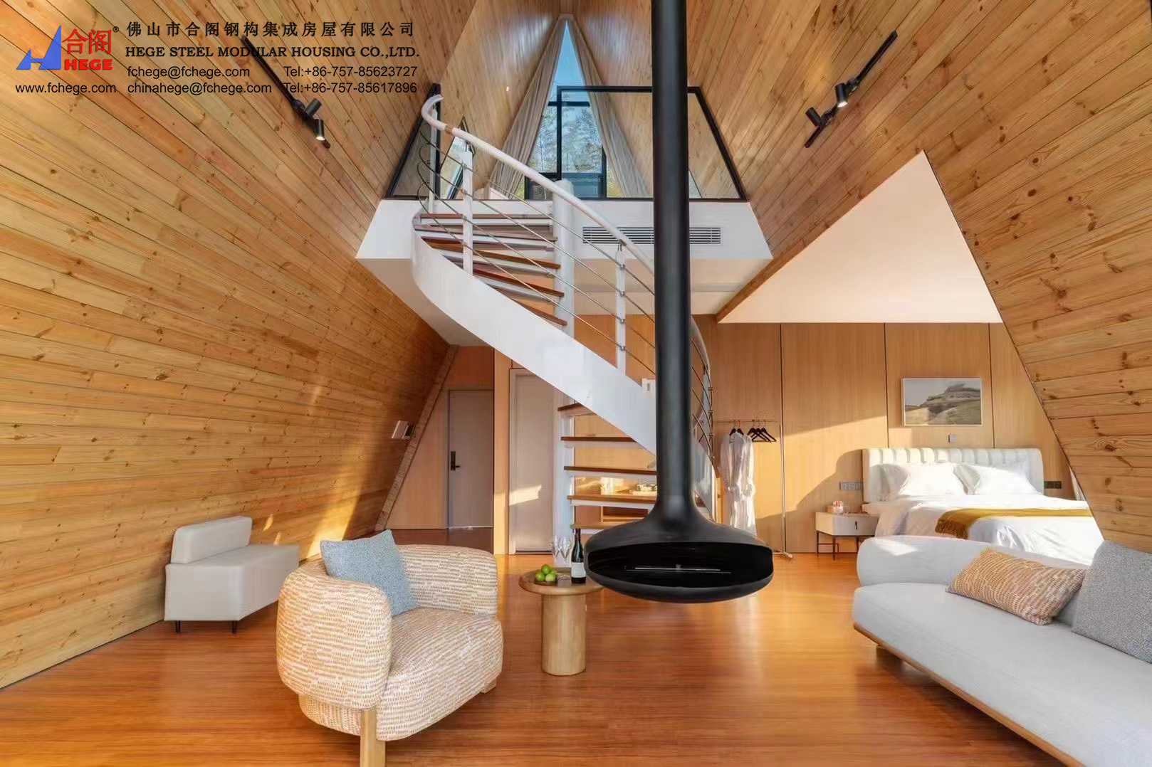 该项目以三角屋为主体建筑,打造的一个森林系旅游度假区项目,三角屋通过不同的层次,创造了丰富的空间视觉效果,既融为一体又相对独立,不同高度带来不同的森林景观体验。