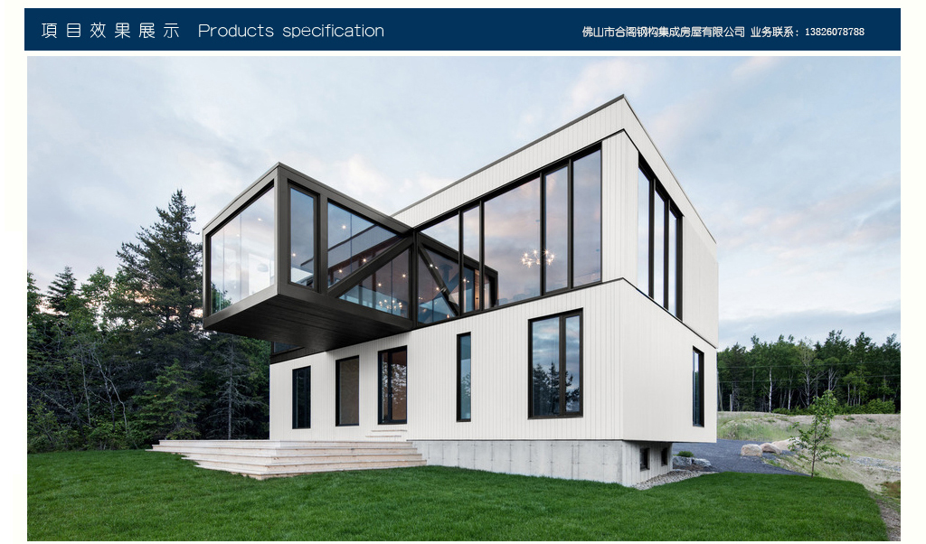 五、拆装方便,性能优越,稳定牢固,防震性能好,防水防火防腐,重量轻。房屋为整体结构,内有框架,墙体为钢板,可用木板饰面,可整体迁移,使用寿命可达20年以上。