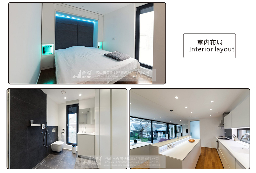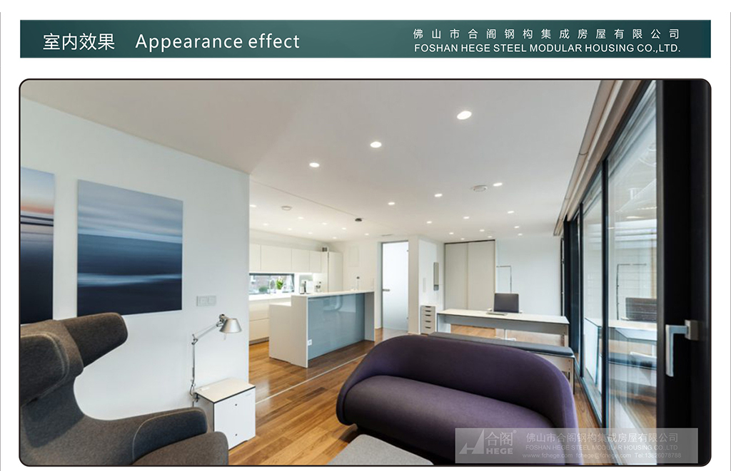 五、拆装方便,性能优越,稳定牢固,防震性能好,防水防火防腐,重量轻。房屋为整体结构,内有框架,墙体为钢板,可用木板饰面,可整体迁移,使用寿命可达20年以上。