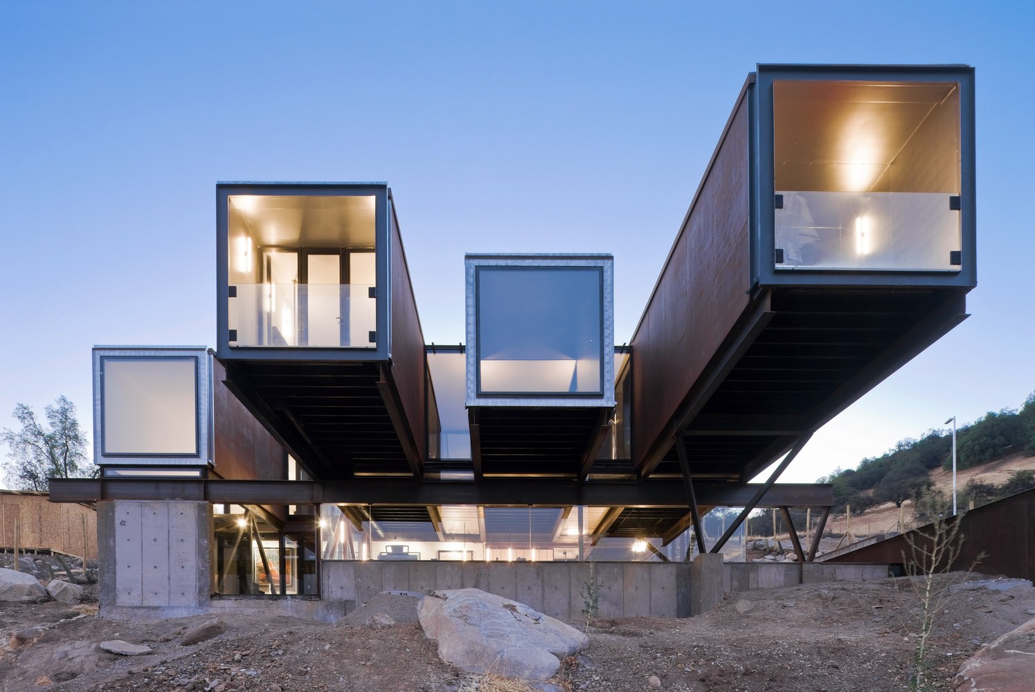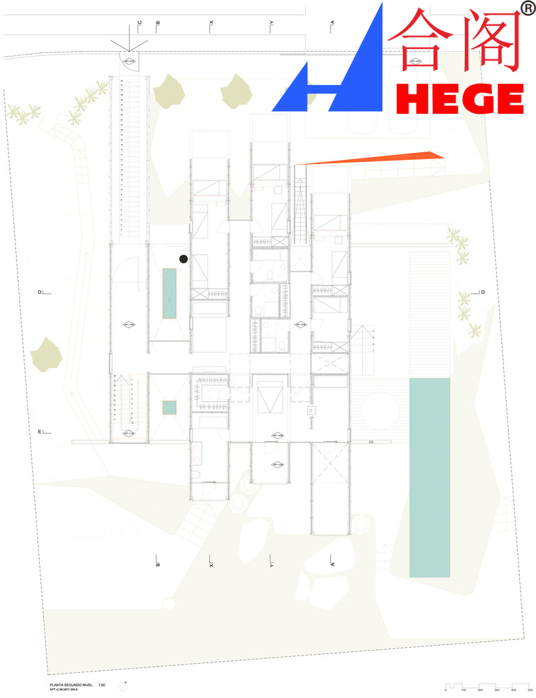 建设阶段包括:第一阶段;放置挡土墙,创造一个水平面,放置住宅的公共区域。第二阶段:将集装箱安装在顶部,用作私人区域,用一种统一的材料包裹容器,这种材料整合了各个部分,也创造了通风。