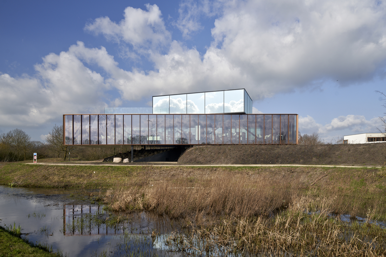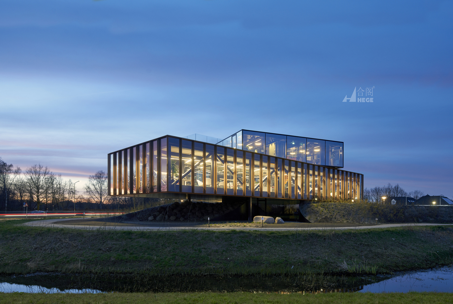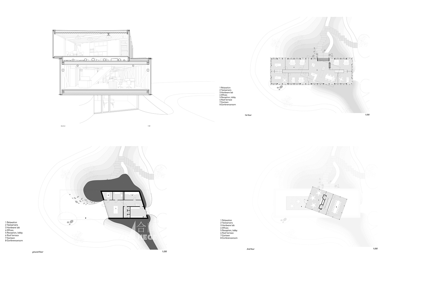 这座建筑有三层。每一层都有其独特的功能,在室内和室外都可以看到。下沉的一层为办公室提供支持功能。除了这些服务和存储设施,音障内还设置了一个公共休闲和视频游戏区。