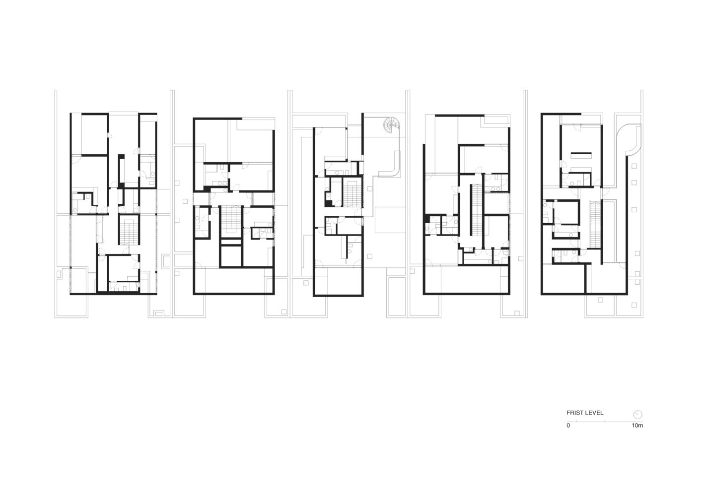 被围墙围起来的上层空间在部分位置开洞,有效地保证所需的私密性。建筑的设计能做一些变化,而不影响整体的统一性。卧室里有更多的变化,还有更广阔的、尽量被保护的城市景色。在俯瞰着360度全景屋顶上设置了舒适的休闲空间,将起居室和休息区结合起来作为社交空间,使其成为体验日落风景的理想场所,在没有遮阴时也一样舒适。