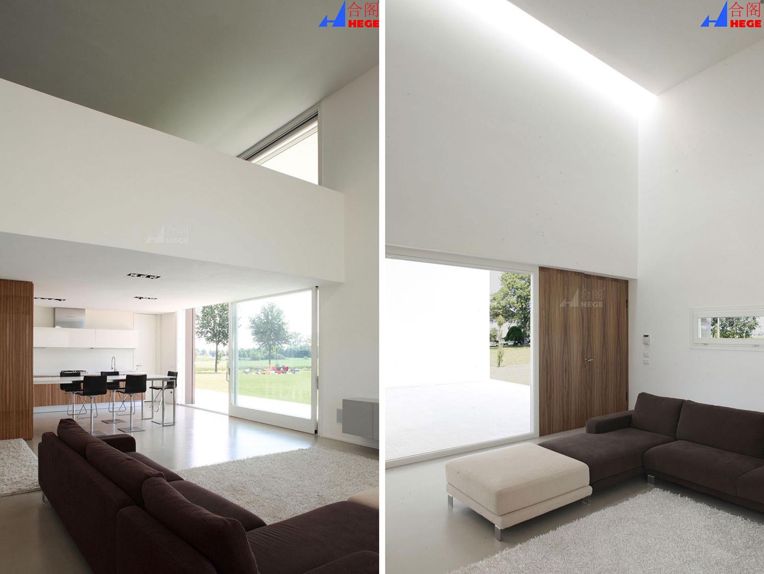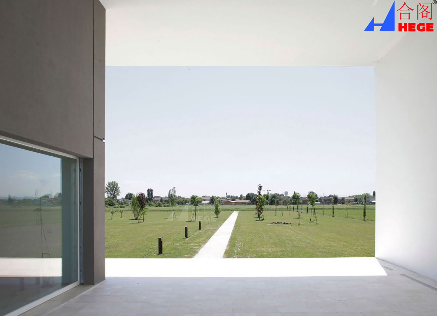 巨大的门廊也明晰了房子和乡村之间的界限。“独立的物件",如楼梯和有着同样的形式和具象性的斜坡,代表了公路和小道的自然延伸。