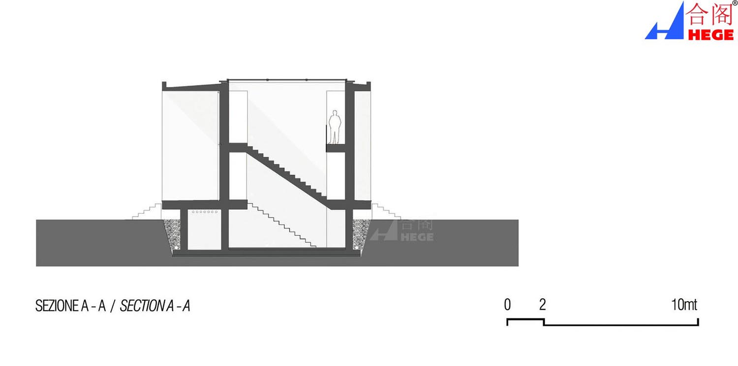 建筑模块与道路的关系以及它作为景观的完整的一部分;这由加强内外的视点和通过虚实(门廊和窗户)间的互动来实现的。建筑与景观、远与近、公共与私密、观察者与瞭望台的关系也被纳入考虑。